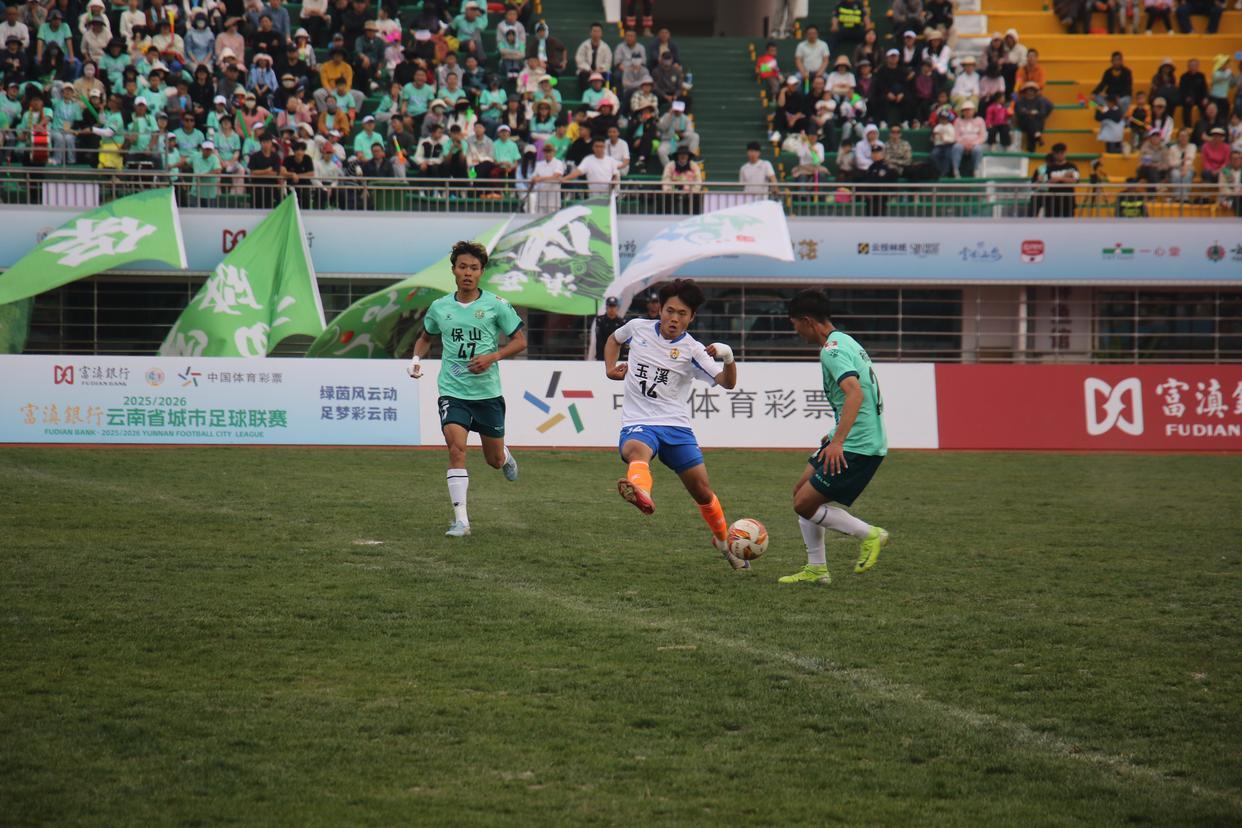3月8日,2025/2026富滇银行云南省城市足球联赛第七轮保山赛区赛事在保山奥林匹克体育中心激情上演。主场作战的保山队迎战玉溪队,双方鏖战90分钟,攻防节奏紧凑、精彩瞬间不断,最终保山队以1:4不敌对手,遗憾落败。